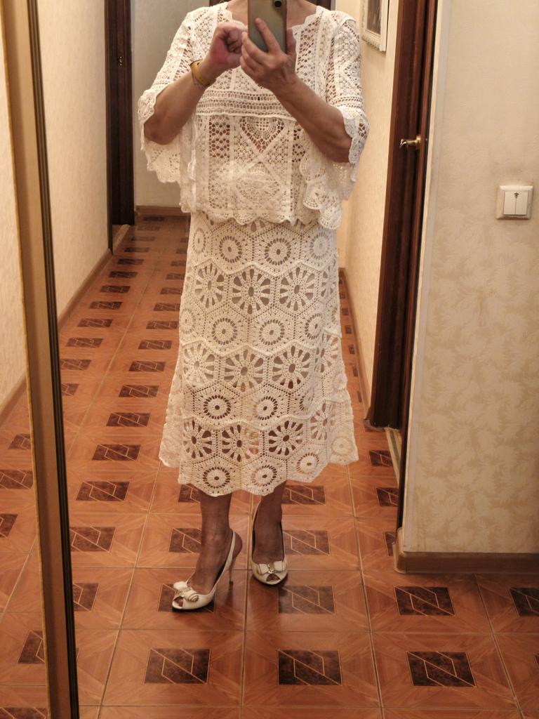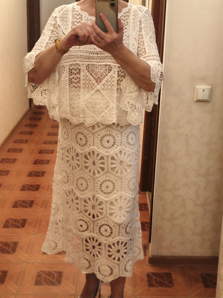 DIMANAF New 2025 Skirt Suit Women Knitting Beach Short Sleeve Lace Hollow Out Sexy O-Neck Hollow Summer Style Tops Tees Loose Basic