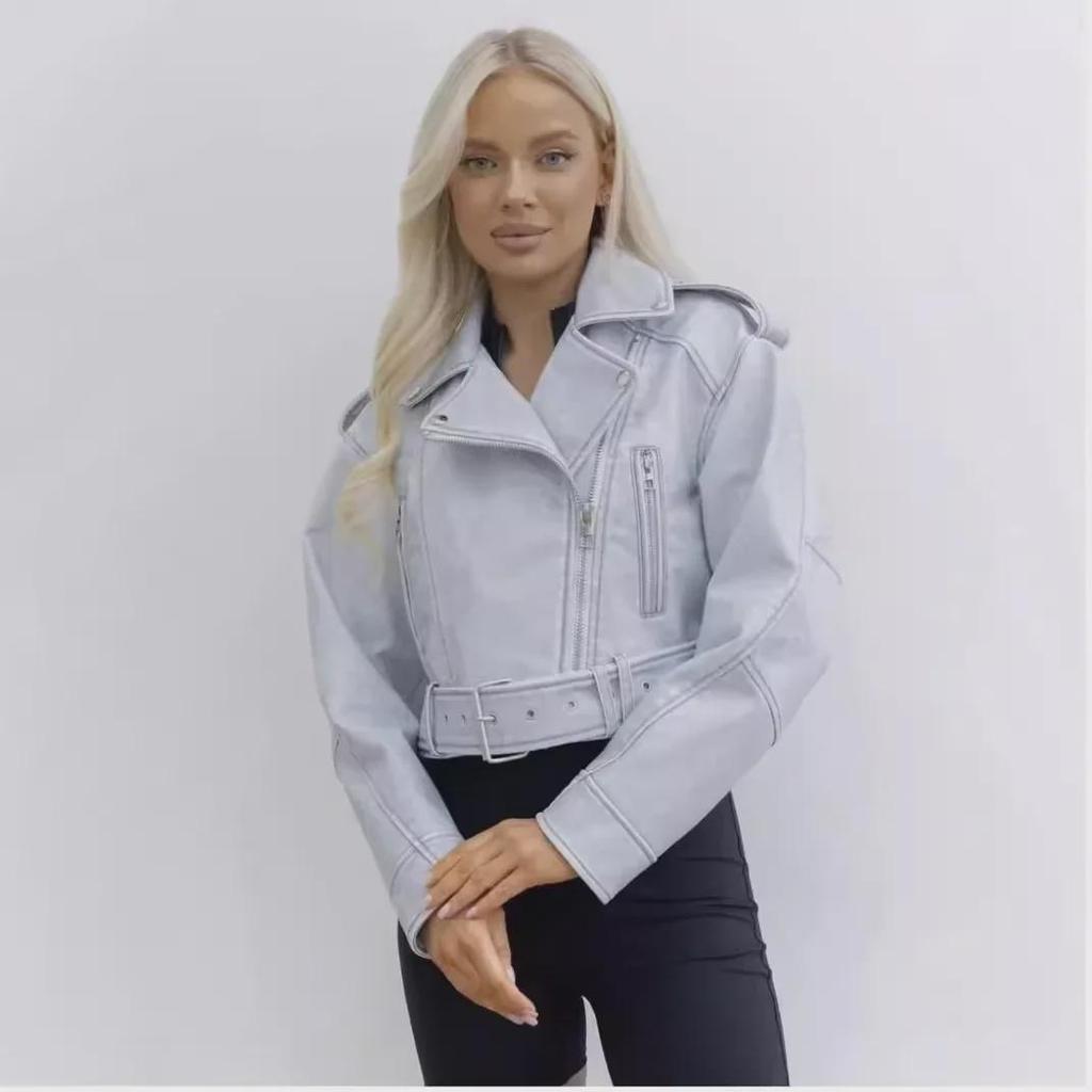 European & American Women's Washed Motorcycle Leather Jacket - 2024 Autumn Fashion