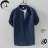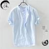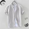 Men's Short-Sleeve Chinese-Style Stand Collar Linen Shirt - Casual, Lightweight, Summer Trend