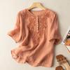 Women's Top Short Sleeve Round Neck Blouses Cotton Linen Blouse Summer Retro Casual Embroidery Shirt