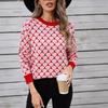 Winter Women's Sweater Love Valentine's Day Pullover Peach Heart Color Clash Sweater