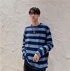 "Unisex Trendy Black & White Striped Long-Sleeve Crew Neck T-Shirt"