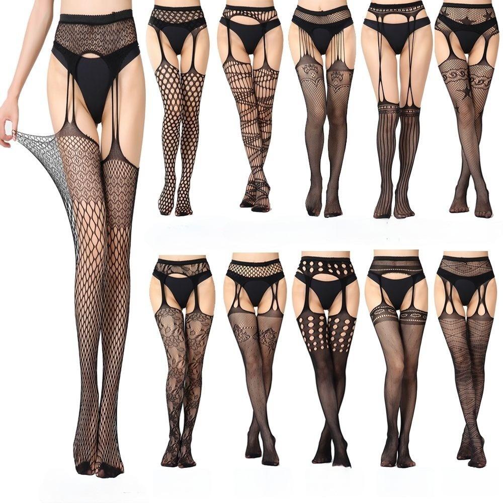 New Anti-hook Fishing Net Sexy Transparent Four-sided Hollow Women's Pantyhose Open Female Garter Socks Jacquard Garter Belt
