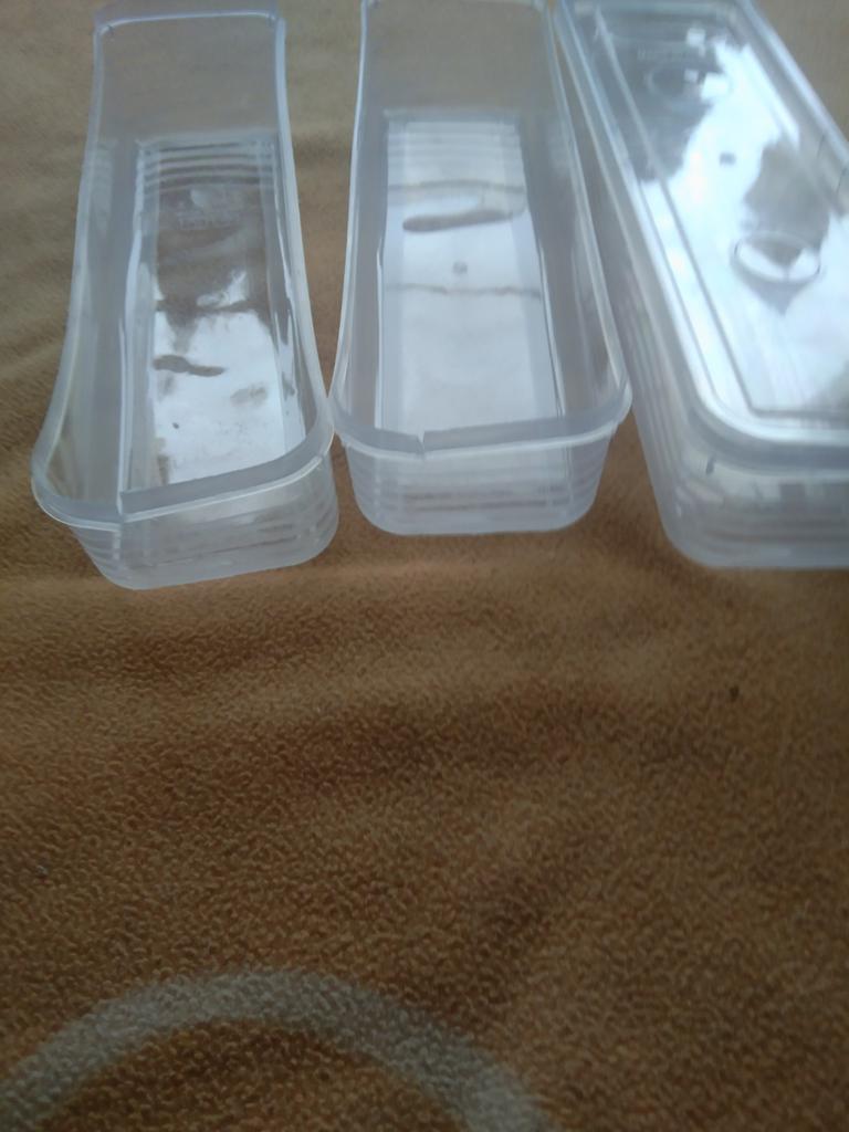 Hello. I will not be able to use the product. The containers are bent and do not straighten out. The size does not correspond to what was ordered at all. They are 5 cm narrower in width and length. The plastic is very thin. How are we going to solve this issue?
