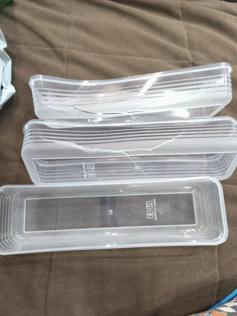 This is something, all are dented, the lids don't fit, they are very thin, the first time I ordered one, it was an amazing container, the greens were as if just picked, I ordered one for each type of greens separately and it arrived - all 5 pcs are dented, I demand a refund!!!