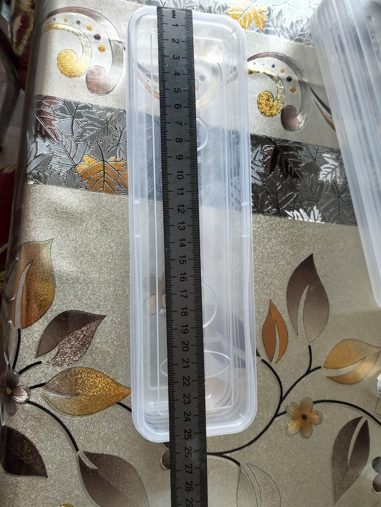 The plastic is not thick enough, it arrived pushed one into the other, and one of the boxes had a warped wall. Two weeks have passed - and it hasn't straightened out in the process of use... the plastic has no smell. So-so - wouldn't order again. It looked more high-quality in the picture. Thin plastic. βββAlso, the size does not match the description. The actual length is 25 cm, but the description states 30 cm.. Based on the above description, I cannot recommendπ...