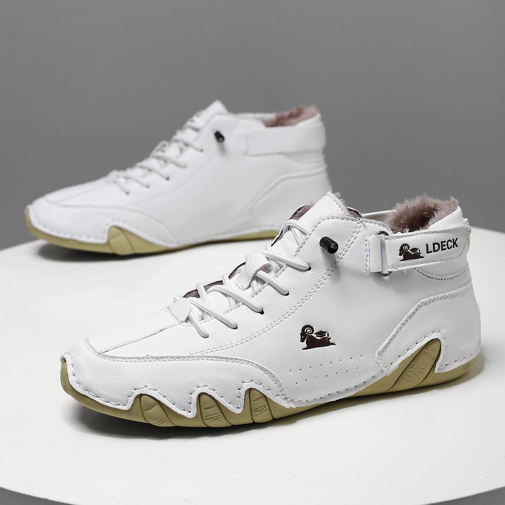 These high-top winter boots are designed to keep you warm and comfortable during the colder months. Featuring a plush velvet lining, they provide exceptional warmth and a cozy fit. The footwear is crafted from durable microfiber for a stylish yet rugged exterior. The rubber sole ensures excellent grip and stability, making these boots perfect for sports and outdoor activities in winter conditions.
