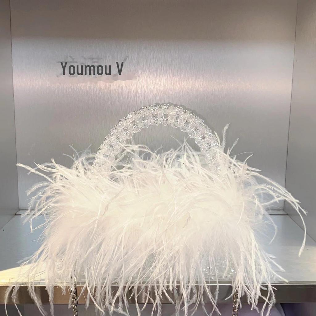 Luxury Candy-Colored Ostrich Feather Beaded Handbag