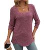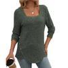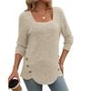 Autumn Women's Buttoned Square Neck Pit Stripe Brushed Solid Long Sleeve Top