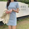 New Korean Style Slim Solid Color Short-sleeved T-shirt for Women Mid-length Dress for Women Women Clothing