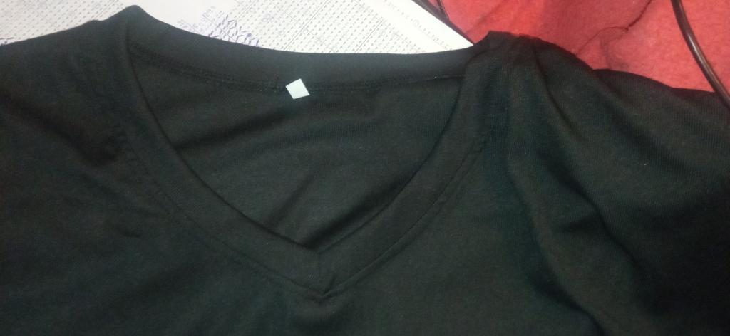 The T-shirt looks like a wide, short undershirt. All the seams are twisted.