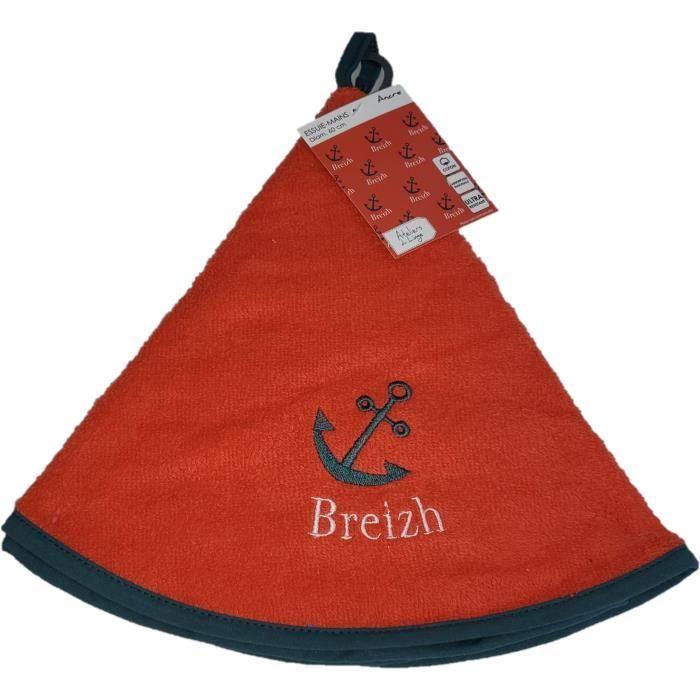 Essuie Mains - Ancre Breizh - Rond 60 Cm - 100% Coton Éponge - Ultra Résistant - Lavable À 60°