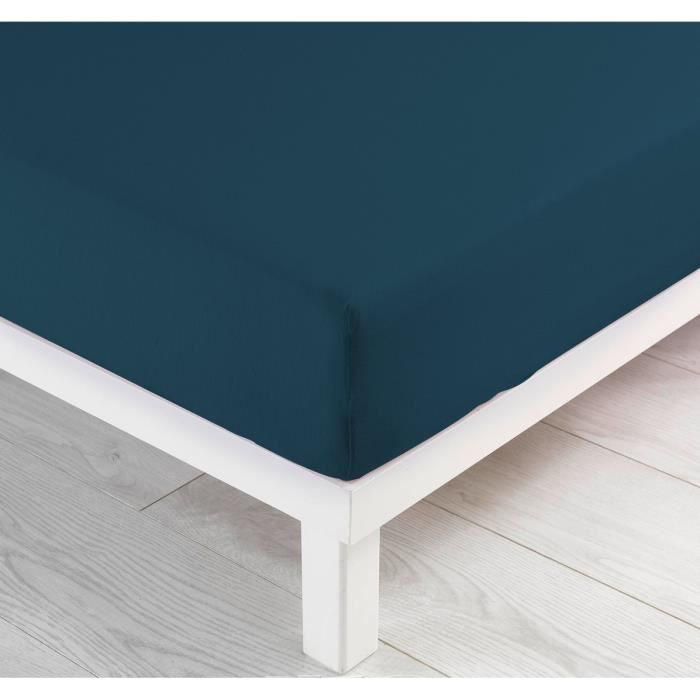 Drap Housse - Coton - 90 X 190 Cm - Bleu Nuit - Extensible - Bonnet 25 Cm