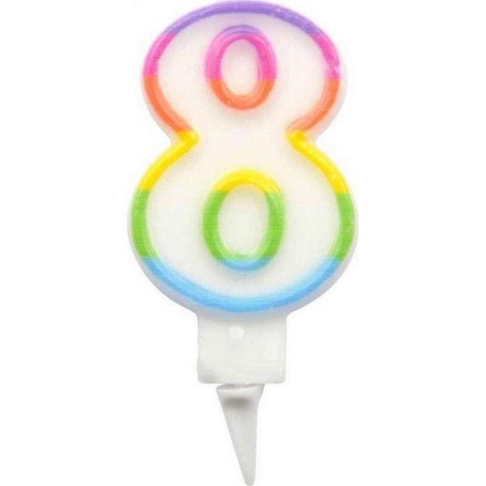 Bougie D'anniversaire Chiffre 8 - Multicolore - Support En Plastique - Hauteur 7.8 Cm