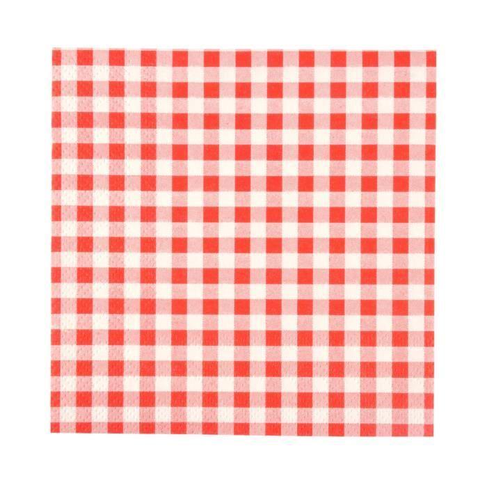Serviettes en papier - non spécifié - lot de 20 - carreaux rouges - 25 x 25 cm - pratiques pour pique-nique
