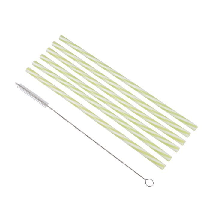 Pailles réutilisables - Non spécifié - 6 pailles + brosse - Plastique - 23 cm - Vert