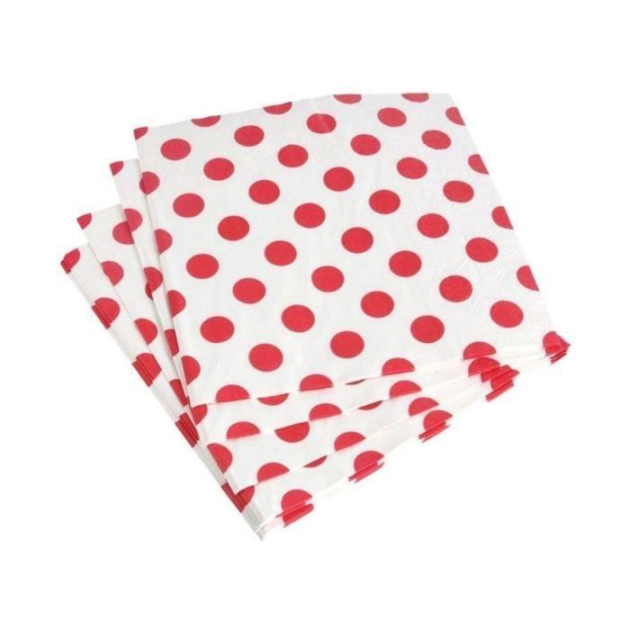 Serviettes en papier - Non spécifié - Lot de 20 - 33 x 33 cm - Point rouge - Papier blanc