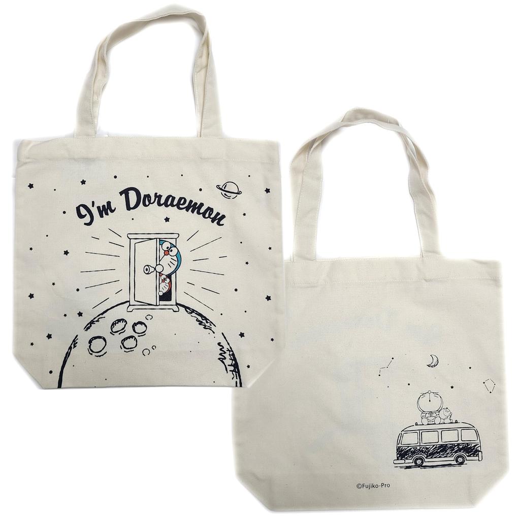Sanrio Tote Bag Cotton Canvas Gusseted Large Capacity Pattern Different Cute Character Doraemon Back/Front