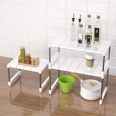 Kitchen Storage Shelf Cabinet Layered Organizers Rack Stackable Counter Shelves Rustproof Spice Rack Pot Bowl Dish Storage Rack