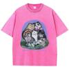 Womans Cotton Washed T-Shirts Five Different Breeds Of Cats Prints Short Sleeve O-Neck Soft Distressed Female Clothes