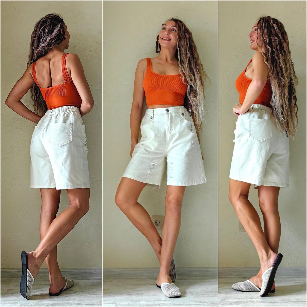 DIMANAF Plus Size Women Shorts Pants Summer Loose Short Jeans Basic High Waist Hole Pants Elastic Waist Maxi