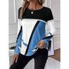IHUASU Women's Pullover O-Neck Color Contrast Patchwork Geometric Print Top T-shirt
