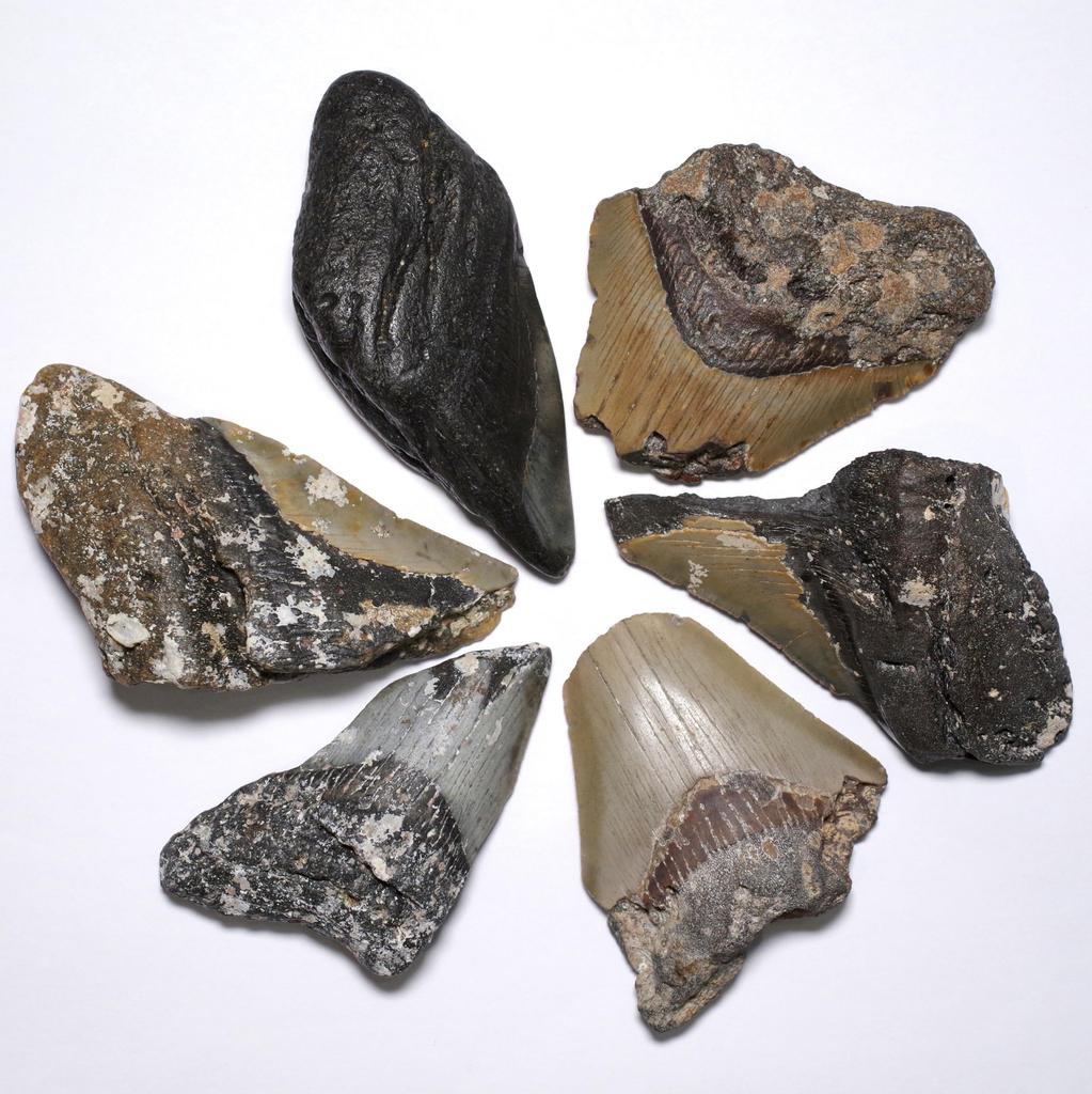 This is a set of uncleaned fossil teeth of Megalodon (Carcharocles/Otodus megalodon). It was pulled up from the ocean floor in North Carolina, USA, by partner divers. All items are one-of-a-kind set products, and we will deliver the items you choose. [Dwelling period: approximately 23 million to 3.6 million years ago / Neogene period (Miocene to Pliocene)] [Excavation site: North Carolina, United States]