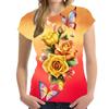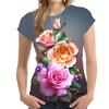 Women's 3D Floral Printed T-shirt, Hip-hop Casual Wear, Harajuku Holiday Short Sleeved T-shirt, Y2K Large T-shirt