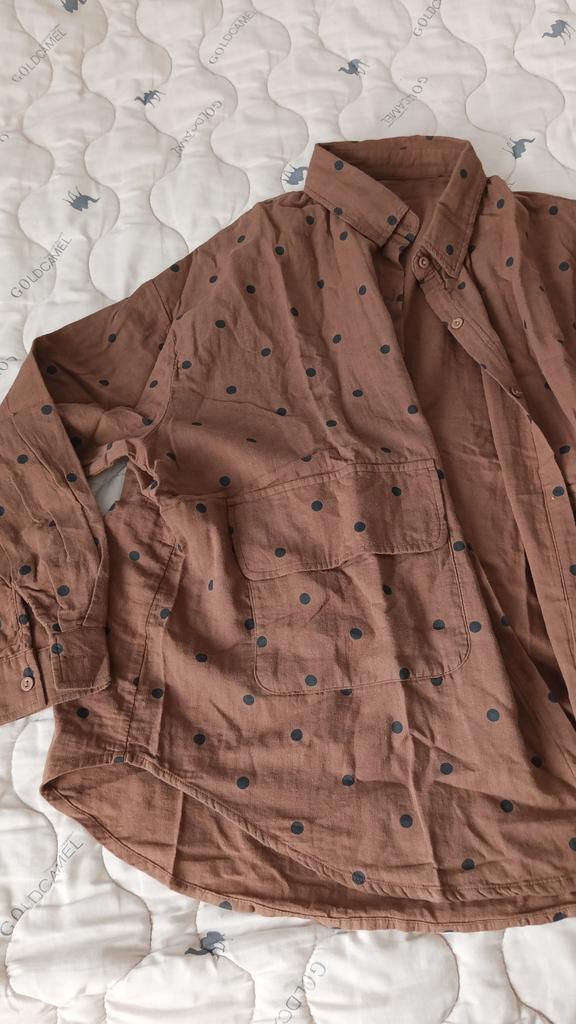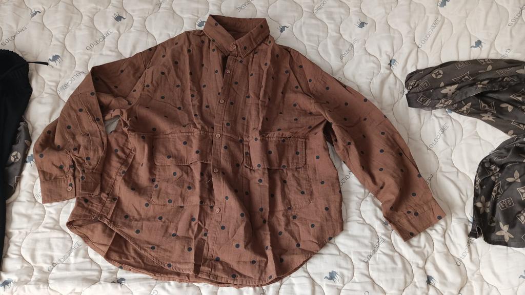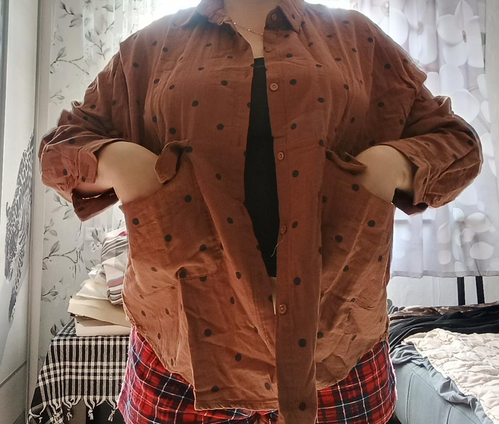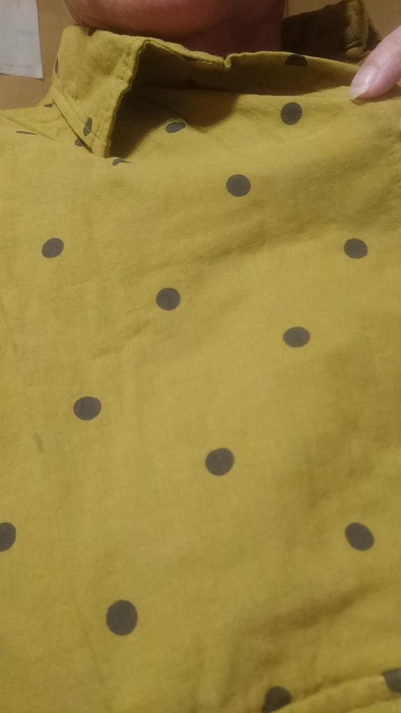 Didn't like the color, very dark, the polka dots aren't visible, but otherwise it corresponds to the description, the seams are well processed. Adding a review, it didn't change after washing, the polka dots became more visible, the shirt is excellent.