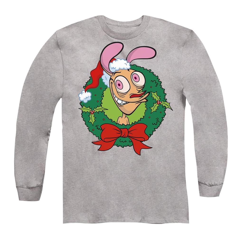 Ren & Stimpy Unisex Adult Wreath Christmas T-Shirt