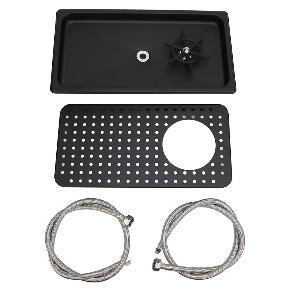 2. WITH DRAIN TRAY: With inlet and outlet to ensure that dirty water is drained quickly to keep the sink clean. The carefully crafted stainless steel drain tray provides enough drying space for the cleaned cups and is not easy to rust. Equipped with two sections of woven hose inlet pipe.