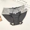 Women's Luxe Satin Mesh Sexy Lace Thin See Through Mid Low Waist Light Cooked Briefs Panties