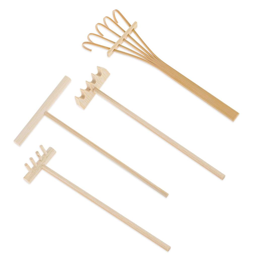 4pcs Garden Sand Rake Set Miniature Wood Handle Tools for Home and Office Decoration Meditations Rake Accessories