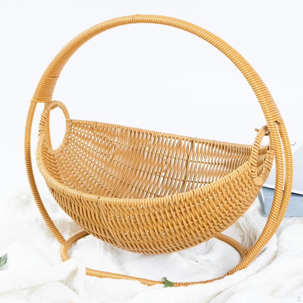 Imitation Rattan Candy Fruit Basket with Top Handle Portable Rustic Multifunctional Sturdy