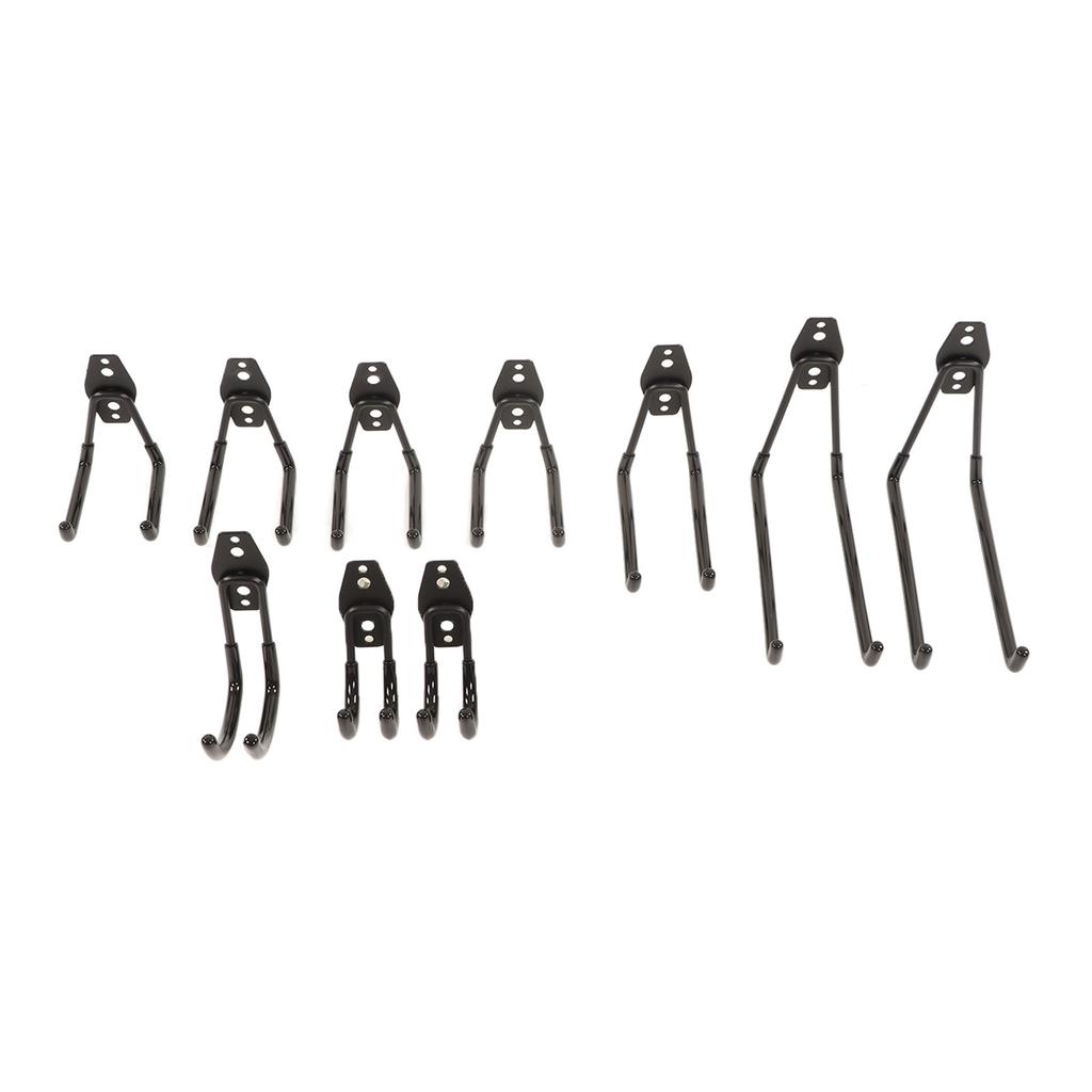 1. MULTIPLE HOOKS: The double hook set comes with 5 different sizes of hooks, for organizing power tools, ladders, bulk items, rope helmets, garden tools and more.