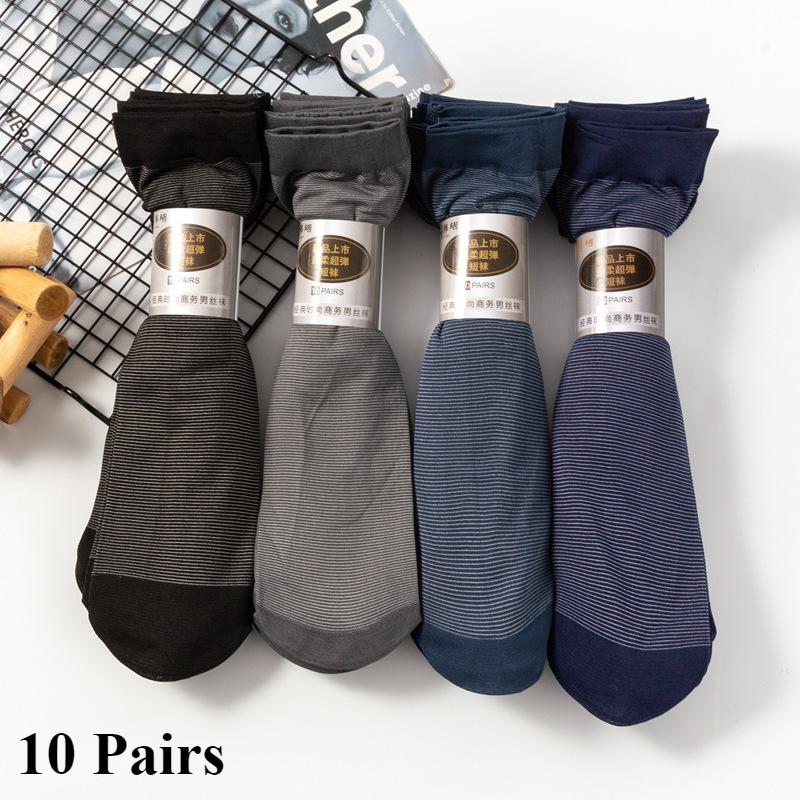 10 Pairs Men's Color Matching Cotton Socks Thin Men's Striped Socks Breathable Sweat-absorbent Mid-tube Business Short Socks