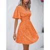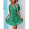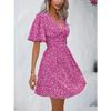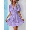 IHUASU Women's Summer V-neck Mid-sleeve Printed High-waisted Floral Pleat Dress