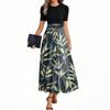 Women's Fashion Casual Belted Round Neck Short Sleeve Floral Patchwork Elegant Dresses