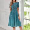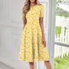 Women's Casual Fashion Round Neck Short Sleeve Floral Printed Midi Dresses