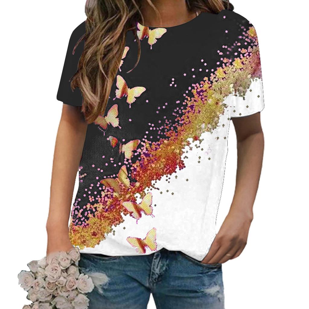 Women's Casual Short Sleeve Comfortable 3D Printing Round Neck T-Shirt