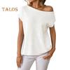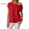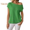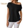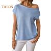 Women Tops Short Sleeve Screw Collar Solid Color T-Shirt Spring Summer Stretchy Pullover Tops Daily Wear