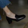 Loafers Women's Skirt Thick Heel High Heels British Style Small Leather Shoes Comfortable Temperament Square Head New Black Single Shoes