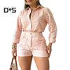 This versatile 2-piece set is a must-have for your wardrobe. The solid color design is perfect for everyday wear and flatters all body types. Featuring a stylish hollow carved fabric, this set is both trendy and sophisticated. Made from a blend of polyester fibers, it is breathable and comfortable for all-day wear.