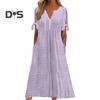 Women's Summer Maxi Dress Boho Eyelet Button V Neck Tie Knot Short Sleeve Midi Dress Summer Beach Vacation Sundress