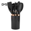 12Pcs Silicone Kitchenware Set Turner Spatula Spoon Non-Stick Heat Resistant Cooking Utensils with Wooden Handles Storage Bucket for All Cookware
