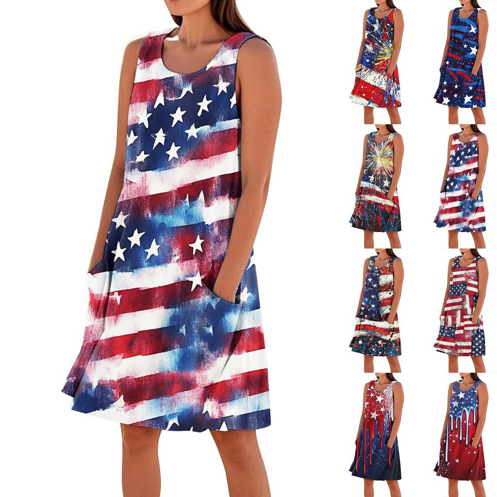 Summer Dresses For Women Loose Beach Vacation Casual Sleeveless Sundresses With Pockets Tank Dress