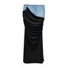 Modern Deconstruction High-waisted Denim Skirt Women's Two-piece Illusion Black Ruffled Splicing Design Sensibility Long Skirt