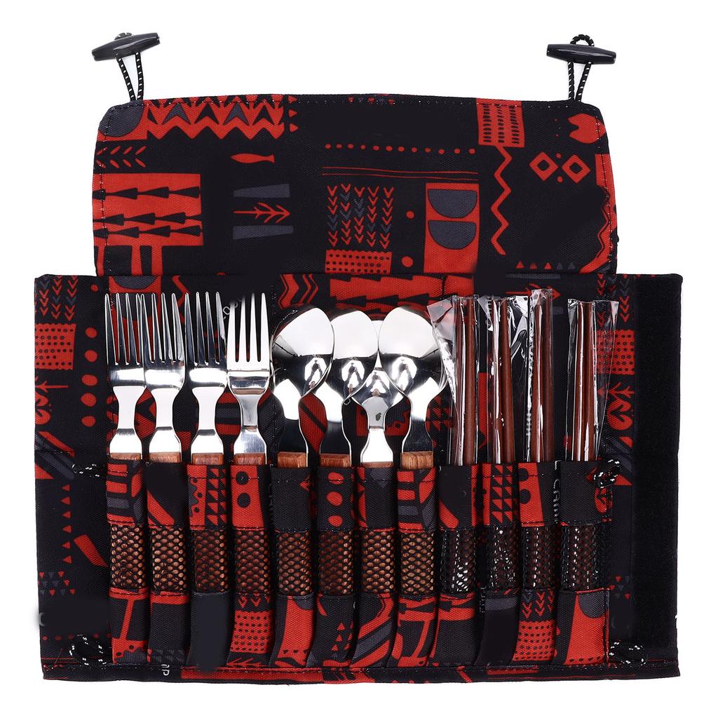 12 Pcs Stainless Steel Wooden Handle Tableware Set Outdoor 4 Person Spoons Forks Chopsticks Set for