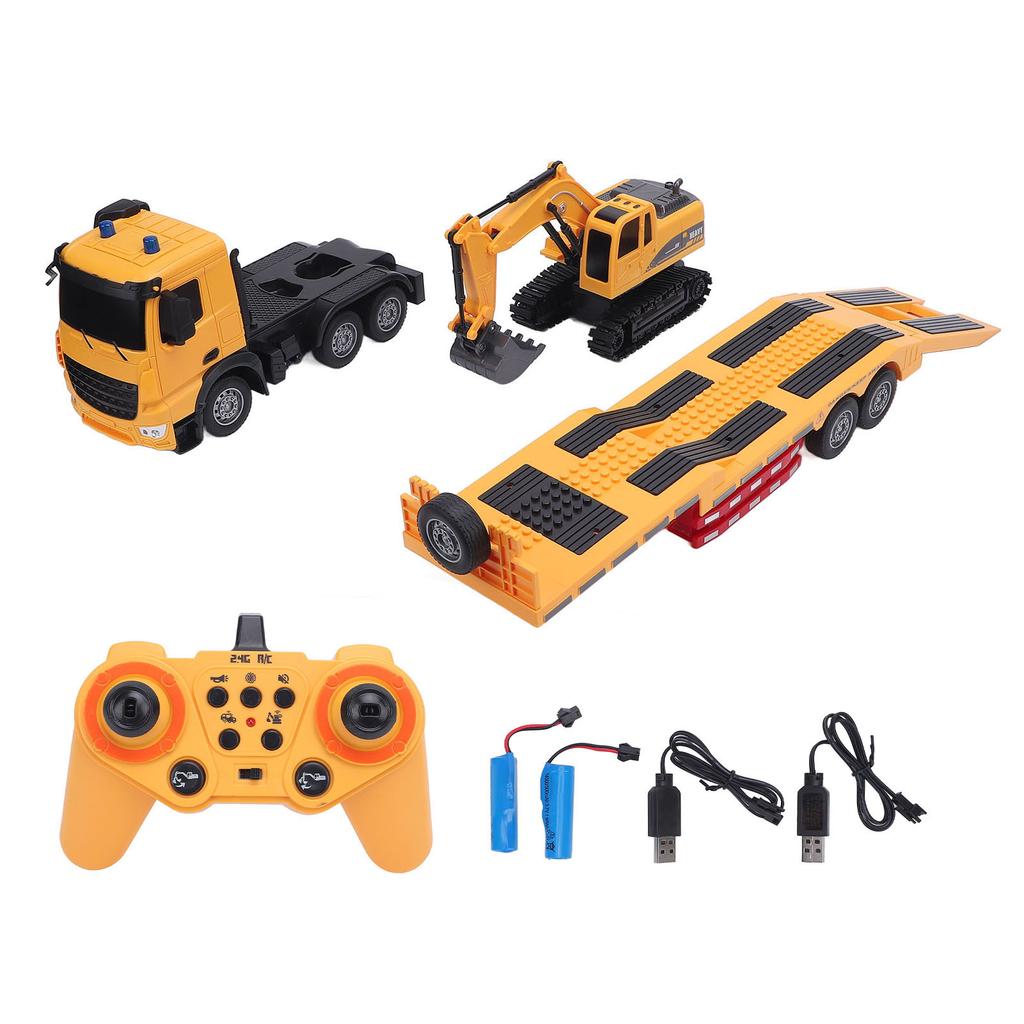 RC Semi Truck Excavator Toy Set Educational Dual Remote Control Battery Powered 2 In 1 Construction