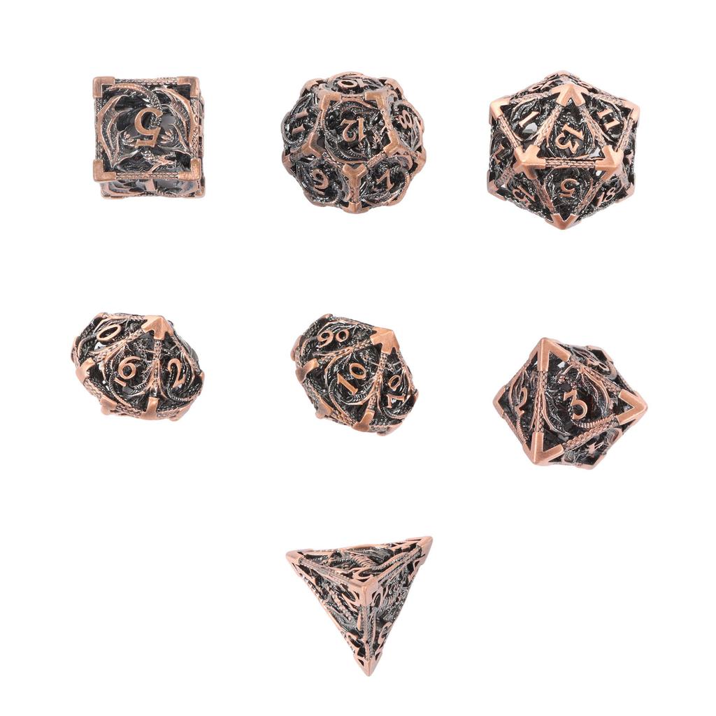 7pcs Board Game Polyhedral Dice Copper Hollow Dragon Pattern Clear Number High Balance Role Playing